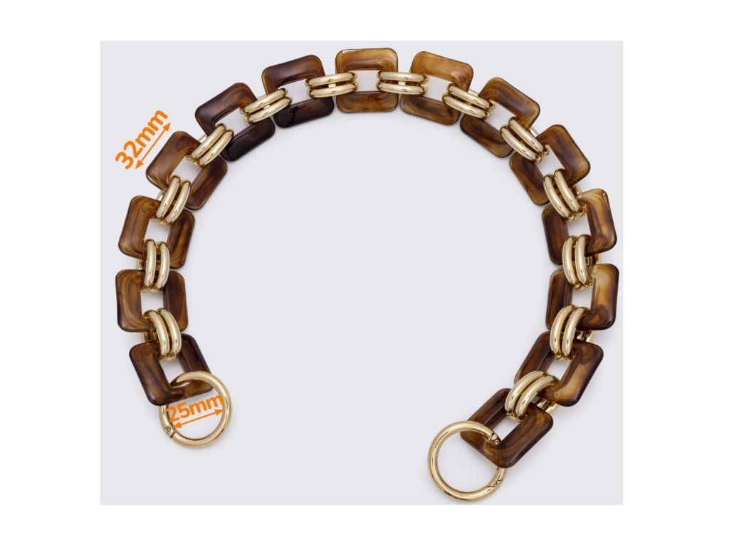 Designový lehký řetízek s karabinkami, na kabelky a tašky. Na koncích má praktické otvírací karabinky, které se jednoduše připnou k kabelce nebo tašce.