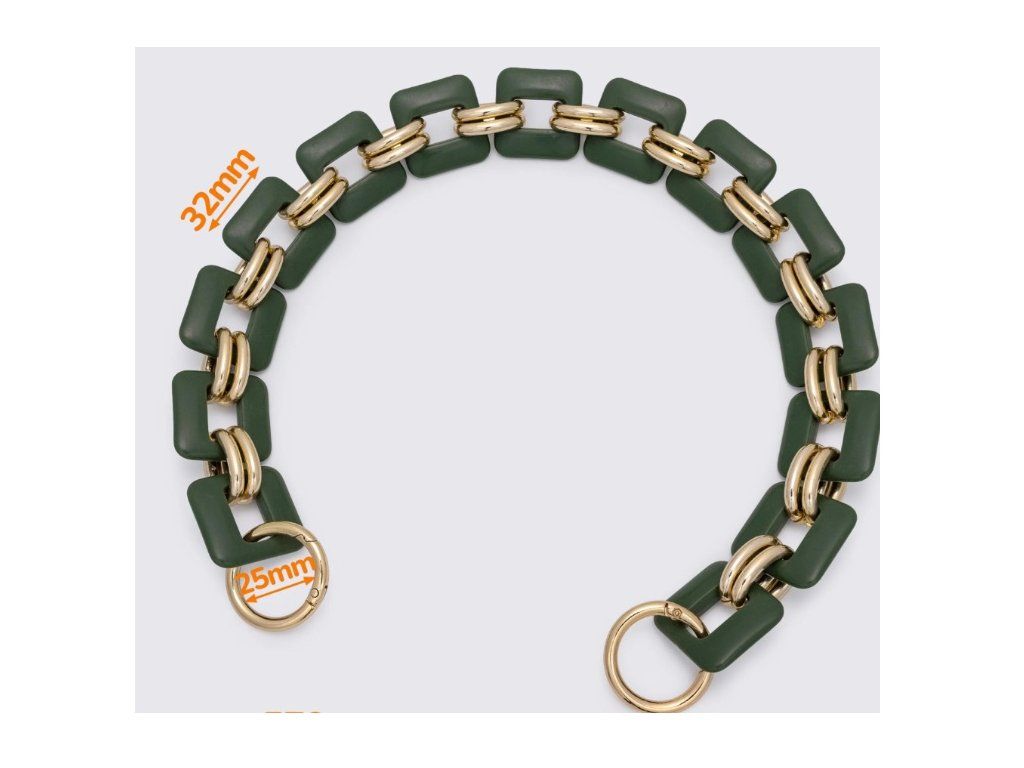 Designový lehký řetízek s karabinkami, na kabelky a tašky. Na koncích má praktické otvírací karabinky, které se jednoduše připnou k kabelce nebo tašce.