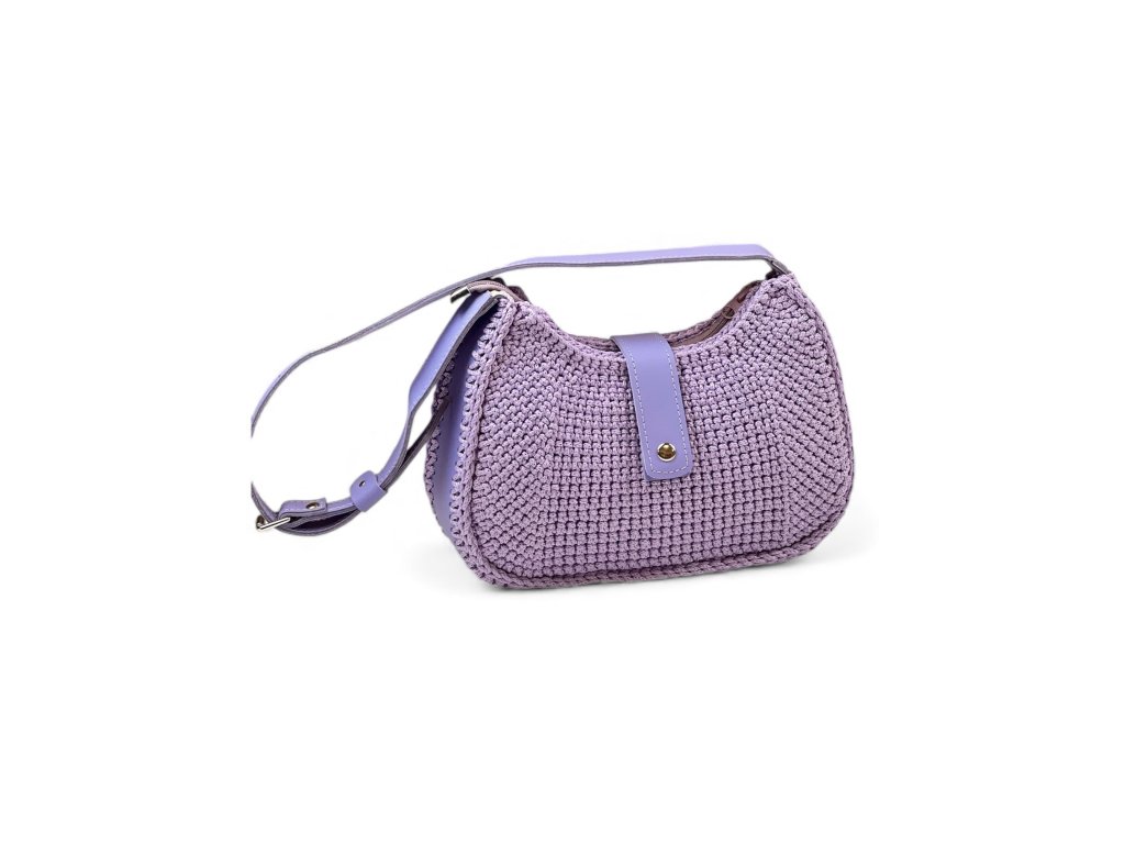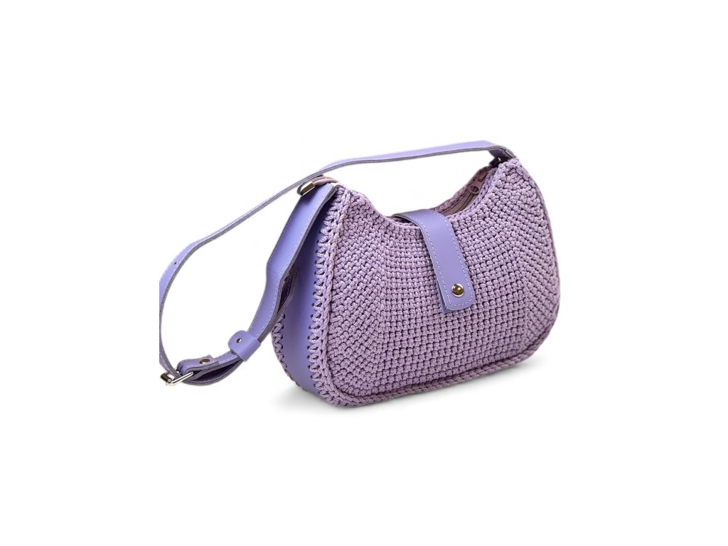 Elegantní háčkovaná kabelka LOREN. Dno, popruh z pravé kůže. Taška se zavírá na zip a magnetické zapínání.
