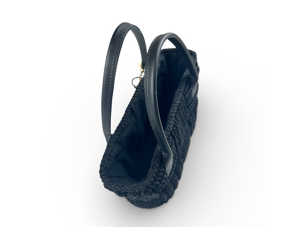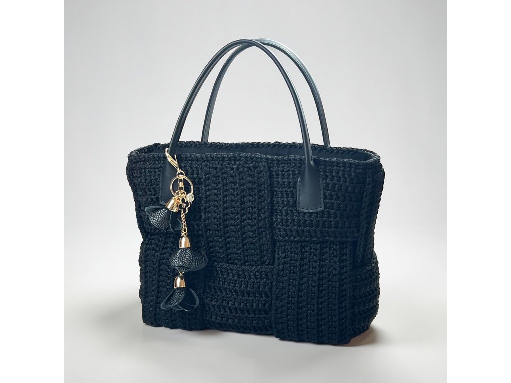 Stylová háčkovaná taška, která dokonale spojuje eleganci a ruční práci. Ucha z pravé kůže dodávají tašce luxusní a nadčasový vzhled.