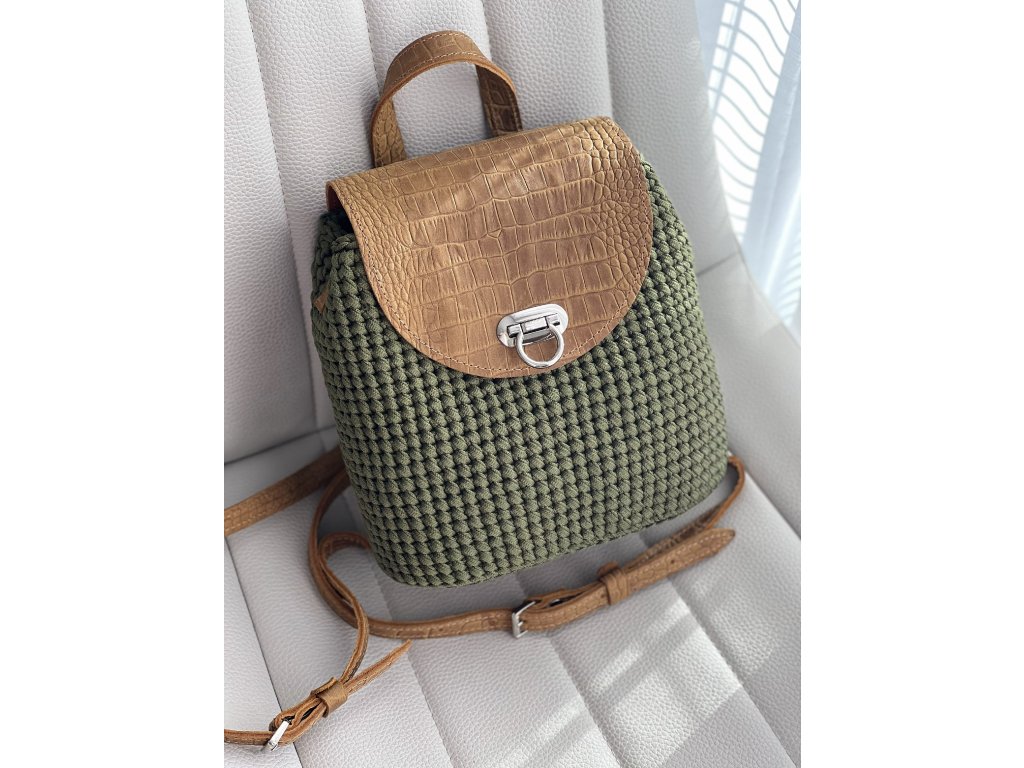 Háčkovaný batoh ASTI/ hořčice-olivový