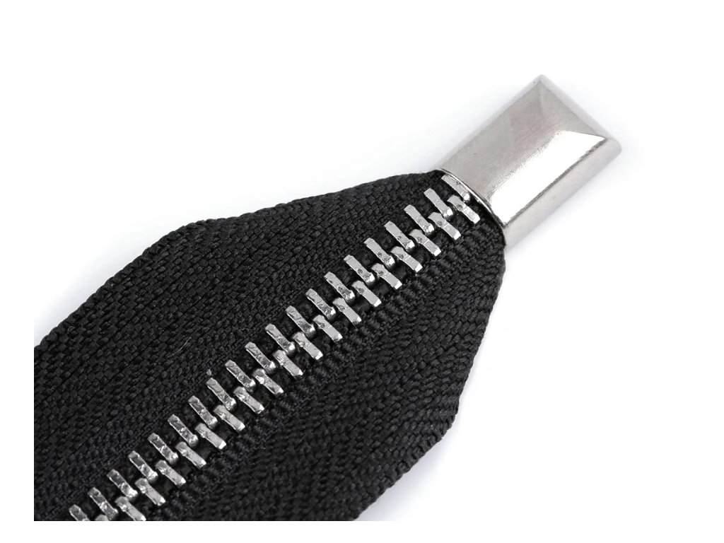 Elegantní kovovou koncovku využijete na zakončení zipu u kabelek, tašek nebo batohů. Schováte do ní nevzhledné konce a šroubkem je zespodu přišroubujete, aby koncovka nevypadla.