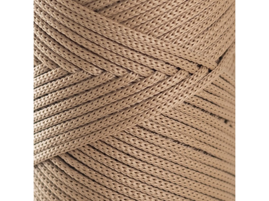Šňůra PP. XL Macrame z polypropylenu má hustou pletenou strukturu, díky které se výrazně nevytahuje. Je odolná vůči UV záření. Je vyrobena z vysoce kvalitního polypropylenového vlákna pletením na speciálním zařízení. Šňůra nemá jádro, což ji činí lehkou a vhodnou pro tvorbu pletených výrobků.