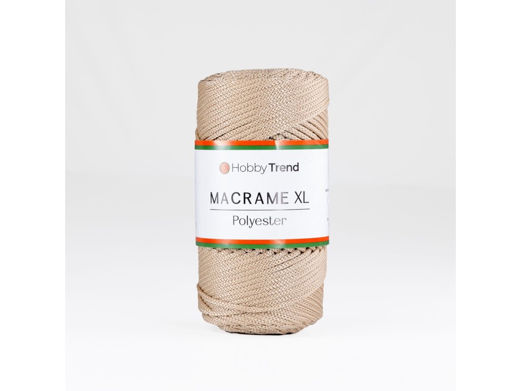 Šňůra PP. XL Macrame z polypropylenu má hustou pletenou strukturu, díky které se výrazně nevytahuje. Je odolná vůči UV záření. Je vyrobena z vysoce kvalitního polypropylenového vlákna pletením na speciálním zařízení. Šňůra nemá jádro, což ji činí lehkou a vhodnou pro tvorbu pletených výrobků.