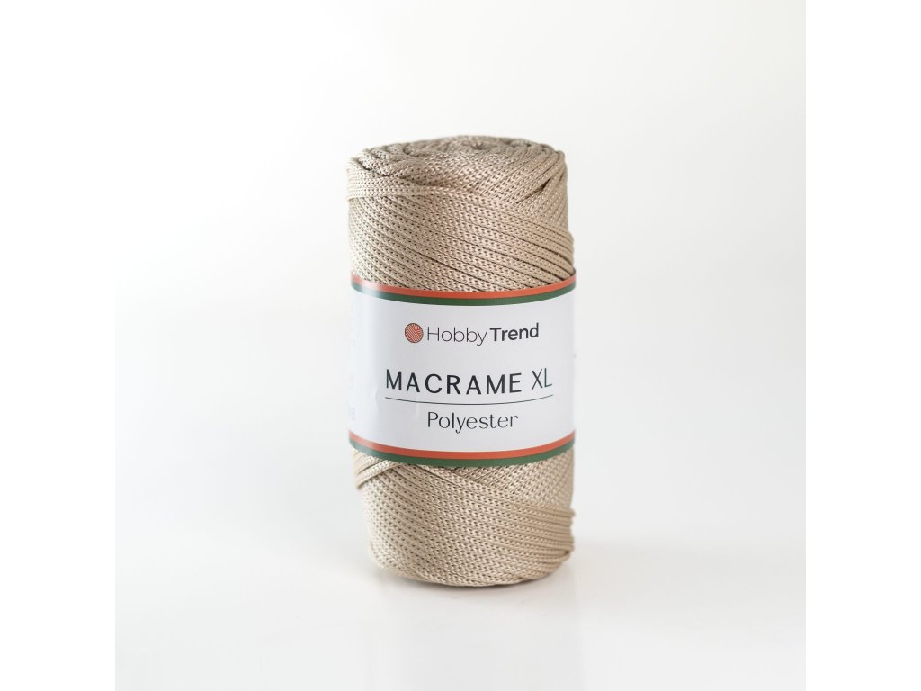 Šňůra PP. XL Macrame z polypropylenu má hustou pletenou strukturu, díky které se výrazně nevytahuje. Je odolná vůči UV záření. Je vyrobena z vysoce kvalitního polypropylenového vlákna pletením na speciálním zařízení. Šňůra nemá jádro, což ji činí lehkou a vhodnou pro tvorbu pletených výrobků.