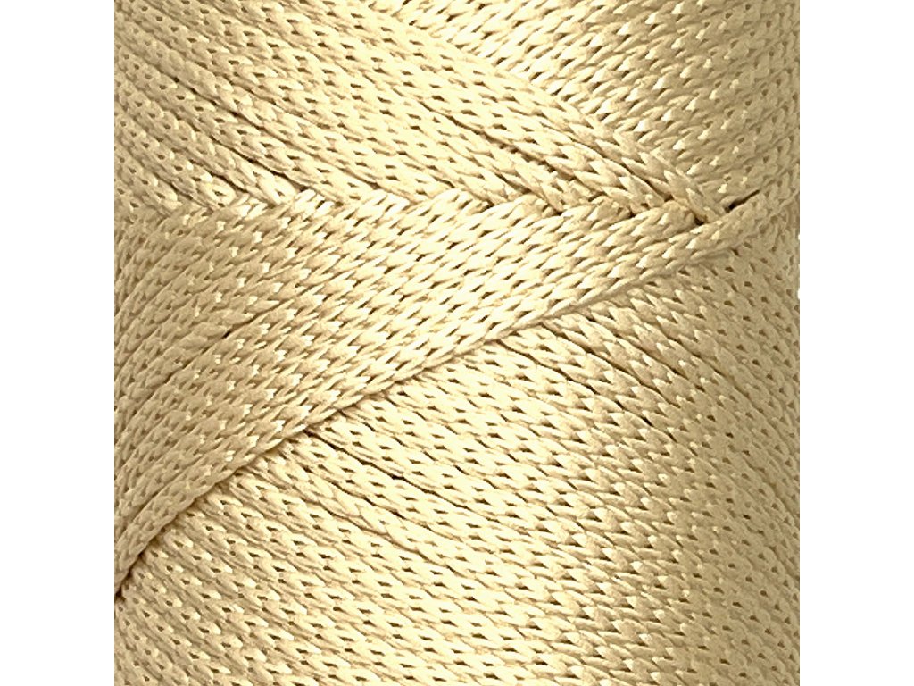 Soft Macrame je 4mm šňůra s matným vzhledem, neklouzavá, vyrobena z prémiového polyesteru. Vhodná na výrobu kabelek, tašek, koberečků, koupelnových předložek, nižších košíků, obalu na květináče a pod.