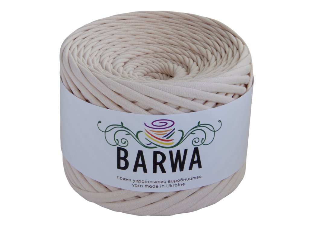 - Bavlněná textilní příze (T-Shirt Yarn) BARWA šířka 7-9 mm je nejuniverzálnější, tzv. standardní šířka příze. Je vhodná jak na pletení, tak na háčkování a lze ji použít i na makramé výrobky. Příze je vyrobena z vysoce kvalitních tureckých látek s pravidelným řezem proužků v celé délce.