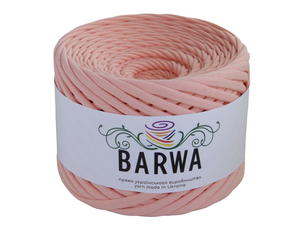 - Bavlněná textilní příze (T-Shirt Yarn) BARWA šířka 7-9 mm je nejuniverzálnější, tzv. standardní šířka příze. Je vhodná jak na pletení, tak na háčkování a lze ji použít i na makramé výrobky. Příze je vyrobena z vysoce kvalitních tureckých látek s pravidelným řezem proužků v celé délce.