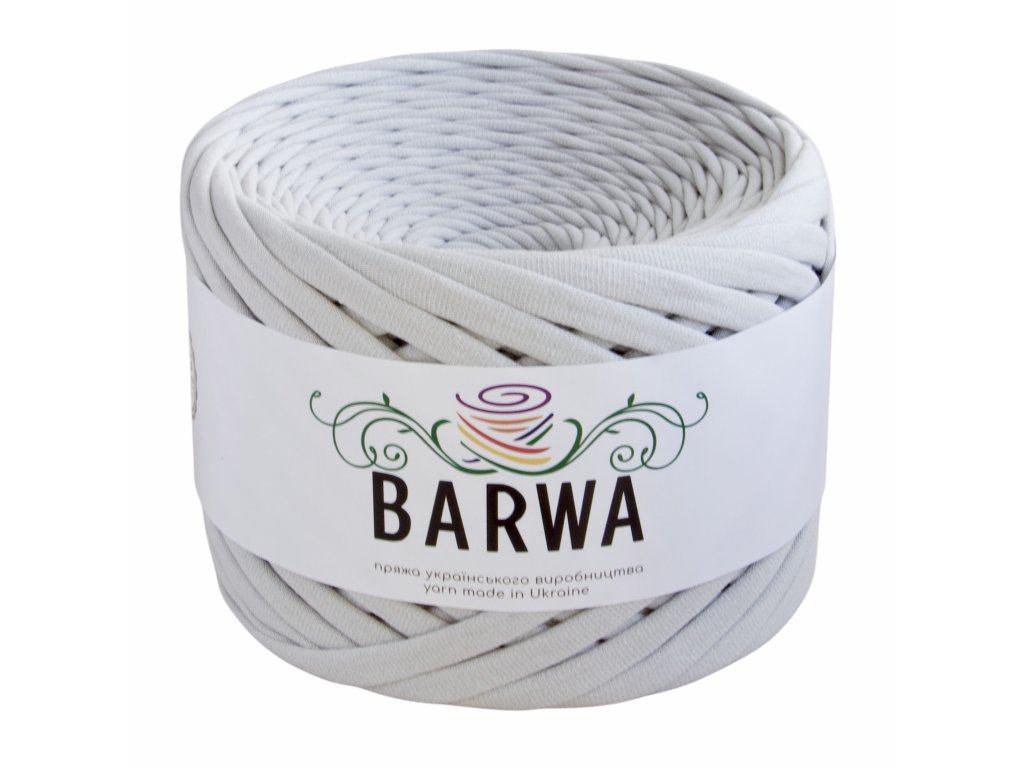 - Bavlněná textilní příze (T-Shirt Yarn) BARWA šířka 7-9 mm je nejuniverzálnější, tzv. standardní šířka příze. Je vhodná jak na pletení, tak na háčkování a lze ji použít i na makramé výrobky. Příze je vyrobena z vysoce kvalitních tureckých látek s pravidelným řezem proužků v celé délce.