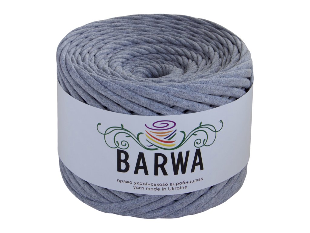 - Bavlněná textilní příze (T-Shirt Yarn) BARWA šířka 7-9 mm je nejuniverzálnější, tzv. standardní šířka příze. Je vhodná jak na pletení, tak na háčkování a lze ji použít i na makramé výrobky. Příze je vyrobena z vysoce kvalitních tureckých látek s pravidelným řezem proužků v celé délce.