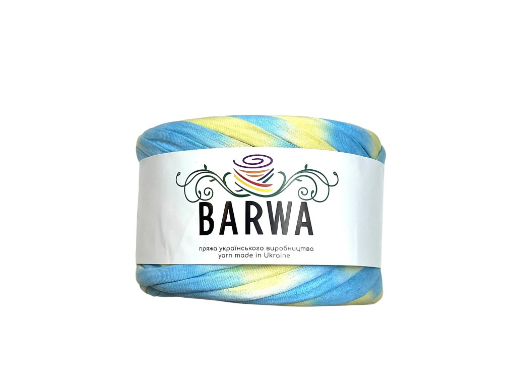 - Bavlněná textilní příze (T-Shirt Yarn) BARWA šířka 7-9 mm je nejuniverzálnější, tzv. standardní šířka příze. Je vhodná jak na pletení, tak na háčkování a lze ji použít i na makramé výrobky. Příze je vyrobena z vysoce kvalitních tureckých látek s pravidelným řezem proužků v celé délce.