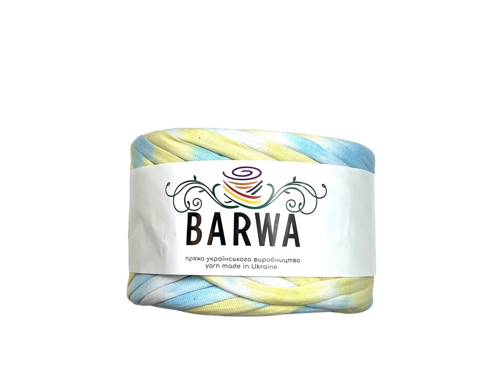 - Bavlněná textilní příze (T-Shirt Yarn) BARWA šířka 7-9 mm je nejuniverzálnější, tzv. standardní šířka příze. Je vhodná jak na pletení, tak na háčkování a lze ji použít i na makramé výrobky. Příze je vyrobena z vysoce kvalitních tureckých látek s pravidelným řezem proužků v celé délce.
